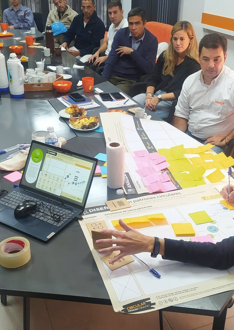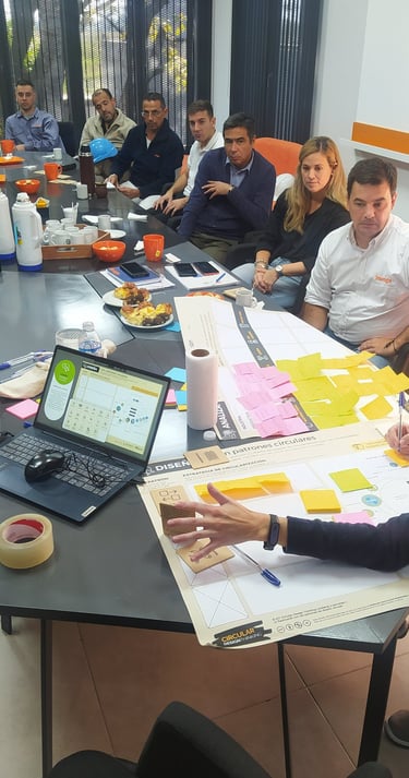 Con metodologías ágiles como Circular Design Thinking(TM) de la empresa 3Vectores ayudamos a repensar las oportunidades circulares y modelos de negocio de impacto. Talleres de co-creación para la creación de propuestas de valor circular.